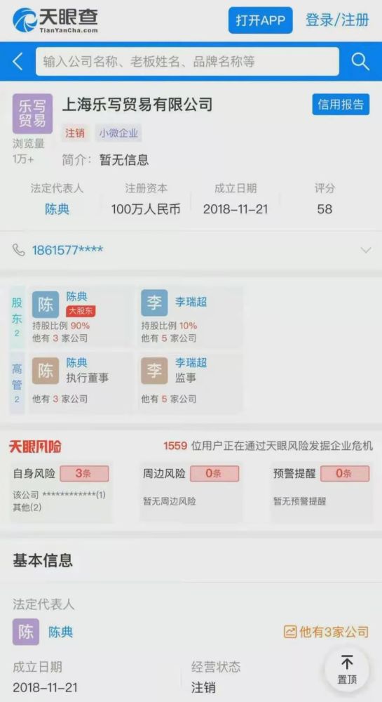 两人在18年成立的公司被发现注销,理由是决议解散。