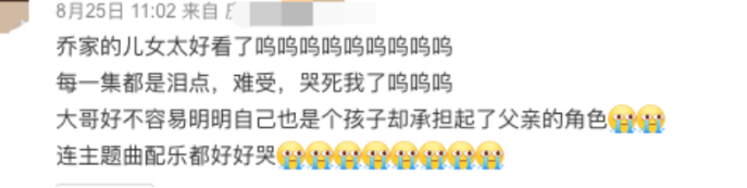 这部剧开播也有一阵了,前几集的时候,不少观众都说被乔家的人猛戳泪点。