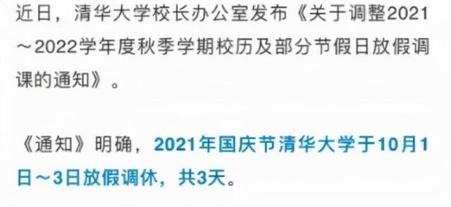 华北地区,清华大学、天津医科大学,国庆假期也为3天,比国家规定的时间有所缩短。