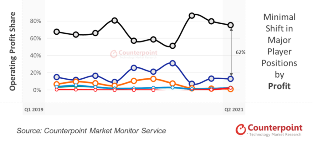 全球市场手机厂商2021Q2利润率排名,图源Counterpoint Research官网