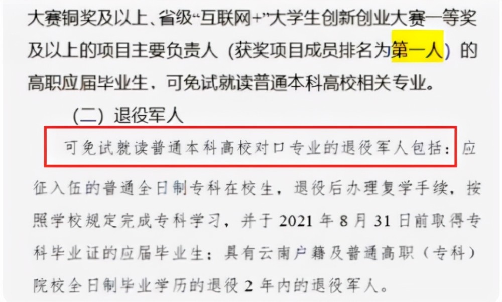 但这项政策也有个前提要求,要求同学们在服兵役期间没有受到过处分,并且学历为全日制专科才行。