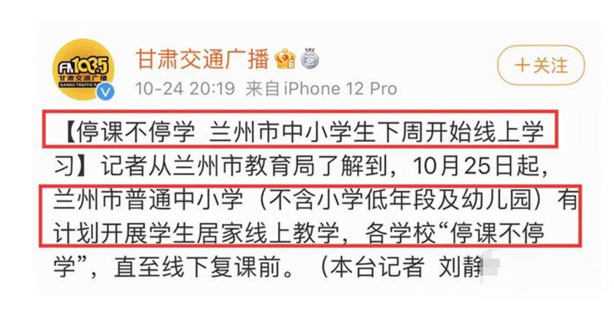 甘肃兰州市、大连庄河中小学开展线上教学网课,以此来保证疫情下,中小学正常的教学制度。