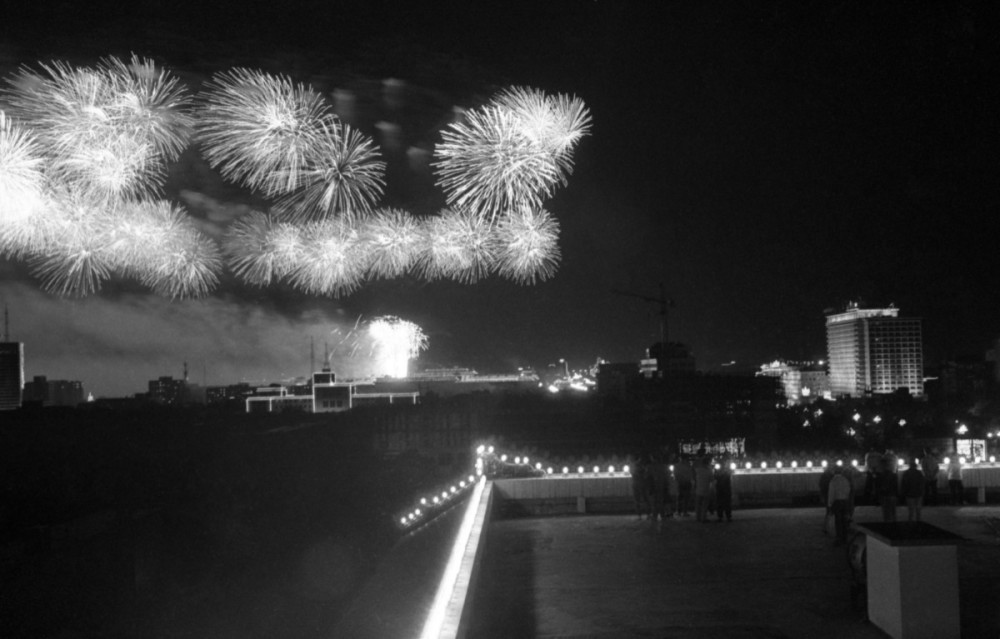 1999年12月20日凌晨,首都北京街头燃放烟火庆祝澳门回归祖国。TAKEFOTO