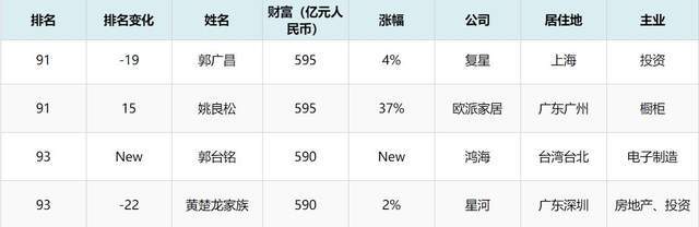 在前不久发布的2021年胡润百富榜上,郭广昌以595亿元的财富,与欧派家居的姚良松等人,共同排在榜单第91位,并成功跻身上海十大富豪之列。