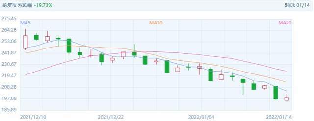 舍得酒业是一家A股上市公司,2021年前三季度实现营收36亿元,同比增长104.54%,实现归母净利润9.7亿元,同比增长211.92%。截至最新收盘,舍得酒业报198元/股,总市值658亿元,而在去年12月中旬,其股价还高达265.5元/股。