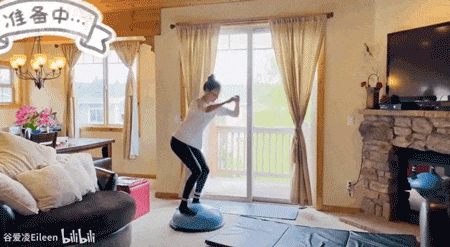 在青蛙公主的家庭训练视频中,可以看到有非常多的稳定性训练小道具,包括像BOSU球、平衡木。还包括像Plank以及旋转等核心稳定动作。讲道理,平衡木上那一个转身跳就可以秒掉多少人了。反正俺是输了。