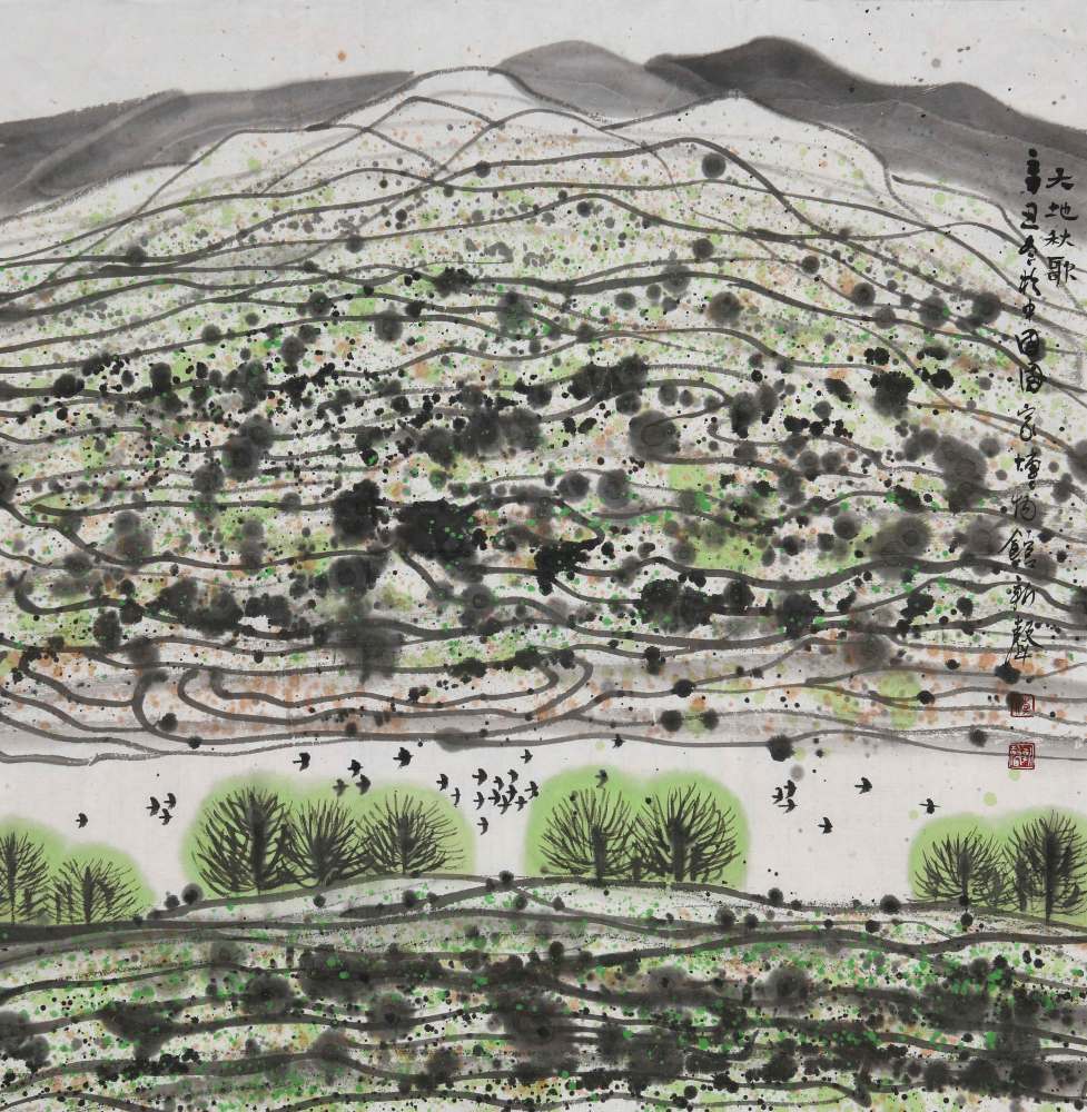 李新声的塞北田园风情画,于内在精神和外在面貌上,内容蕴涵上和笔墨语言上,同传统山水画和当下同类画家的作品有着明显的区别,他能够突显出鲜明的艺术个性和个人风格,不但突破了传统山水画主观因素和概念化的局限,而且尤为注重广袤的塞北自然风光和田园风情的表现,并将写意性浓彩相结合,熔抒情的笔墨语言境界和绚丽色彩的视觉效果于一体,显现出清新优雅的格调和具有强烈时代精神的崭新面貌,展现出他充沛的鲜明地域特色和丰厚的文化内涵,实现了塞北田园画的个性化风格的定位。
