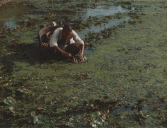 农民从湖里或池塘中采摘菱角,并将其贩卖而用於贴补生活。