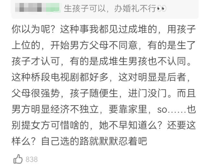 可惜网友不信,现在还有人说什么“不被父母承认的感情终究走不到最后”,甚至有人吐槽张嘉倪“豪门梦碎”,生了俩儿子仍然没能被婆家认可,她当初嫁给买超就是图钱,结果一看人家钱都在爸妈手里,“捞不到所以分了呗”。