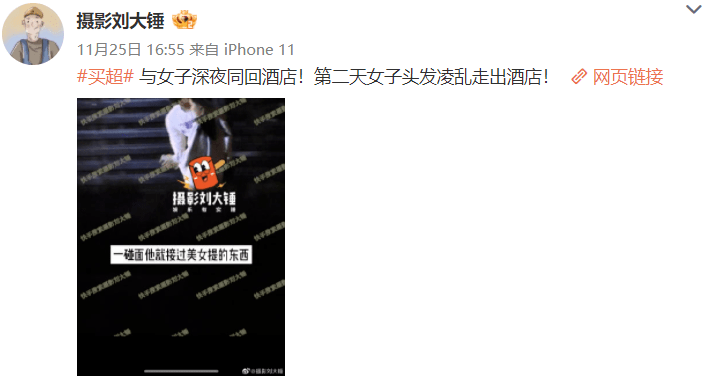 随后狗仔拍到了买超下楼接人,见面就接过美女拎的东西、搂了一把腰、同回酒店共度一夜、早上6点美女独自出来,在不少网友看来这些同框证据算是蛮实锤了。