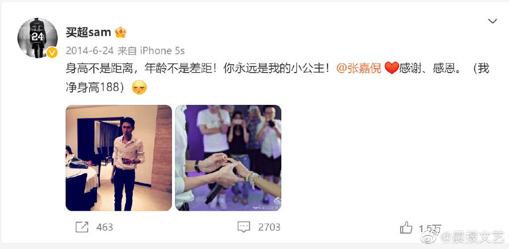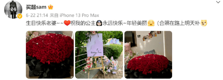结婚多年来,买超热衷于在社交平台晒老婆、秀恩爱,喊张嘉倪“公主”、“女神”,日常示爱、生日祝福、纪念日什么的从不缺席,虽然也会因为张嘉倪拍吻戏之类的工作吃醋,但他也有在付出努力支持另一半的工作。