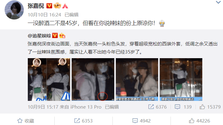 除了线上互动变少,两个人在线下也没了之前那种宛如“连体婴”的热乎劲儿,反而被媒体拍到多次单独行动、跟朋友聚会。张嘉倪上个月就被拍到换了新发色在路边“深夜买醉”,但她本人出来狠狠辟谣了醉酒这一点。