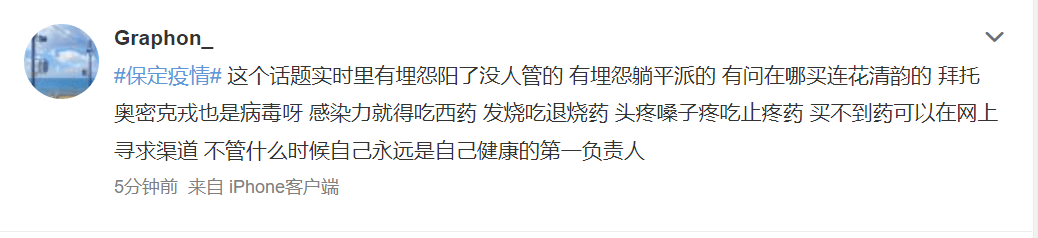 通过保定疫情冲上热搜来看,可能主要有两个方面原因,一是放松后疫情反弹,官方信息通报不及时,二是大家恐慌心理。武汉大学中南医院重症医学科主任彭志勇表示,“感染新冠并不可怕。把老百姓的恐慌心理打消了,就不会发生医疗挤兑。”