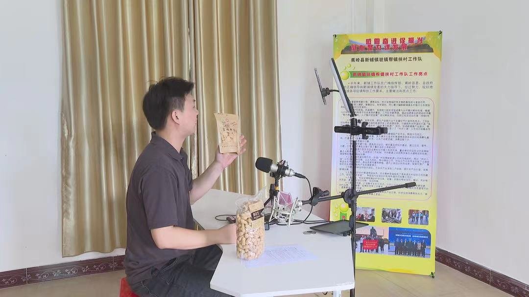 乡村振兴行动志愿者叶凯文正在通过电商平台直播打开农产品销路。通讯员供图