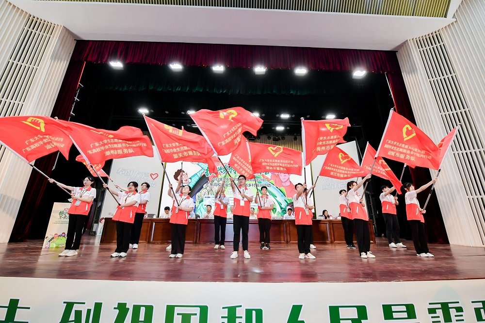 2022年广东高校毕业生志愿服务乡村振兴行动出征仪式进行授旗。通讯员供图