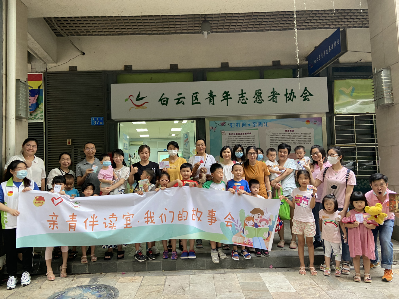 白云区岭南新世界社区“志愿伴读室”项目,志愿者与服务对象合影。通讯员供图