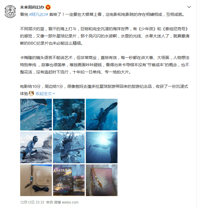 还有科学领域KOL也受邀观看了电影,他表示电影展现出了不同层次的蓝、冒汗的海上打斗,有《少年派的奇幻漂流》和《泰坦尼克号》的感觉,而画面的精细程度,就连BBC的纪录片也比不过。最后给电影打出了10分满分。