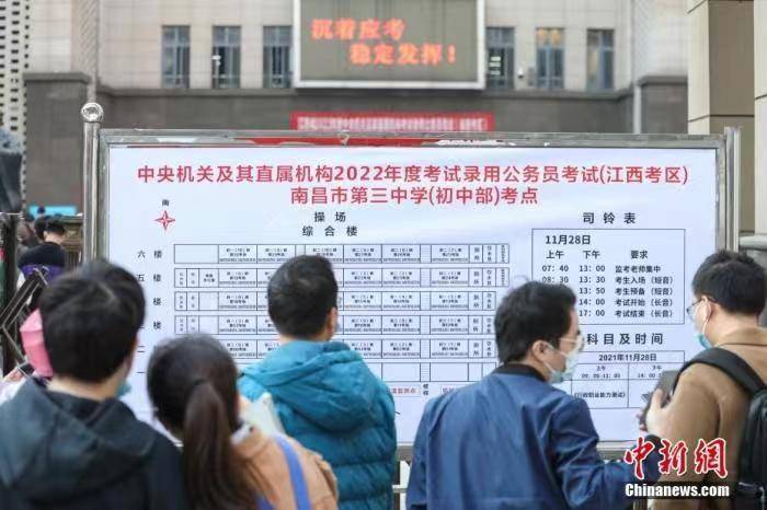 资料图:2021年11月28日,江西南昌,考生们在查看考场安排表 中新社记者 刘力鑫 摄