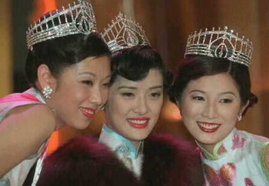 1998年港姐冠军向海岚(中)、亚军赵翠仪(左)、季军吴忻熹。