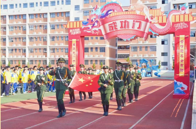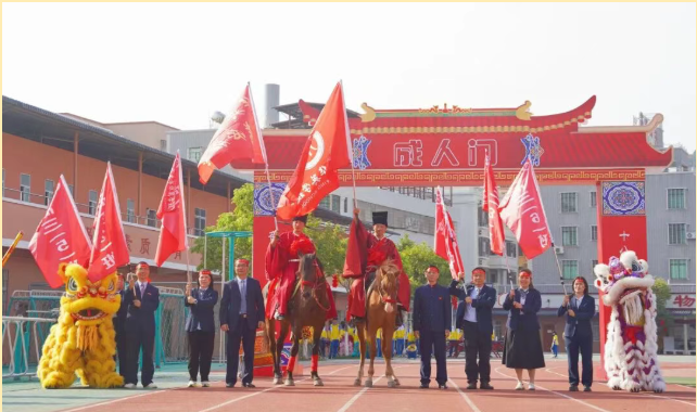 高考誓师环节气势如虹。高中部主任刘小燕带领全体高三学子高举右拳庄严宣誓,誓言铿锵有力,响彻校园。“2026高考必胜!华英必胜!”的呐喊,彰显少年冲刺决心。授旗仪式将气氛推向高潮,吴其茂校长将“高考必胜旗”授予高三级长劳伟烈,战旗飘扬,信念传递。随后,醒狮领航、教师击掌助威,状元骏马执旗绕场,马蹄声声奏响冲刺节拍,全场斗志昂扬。