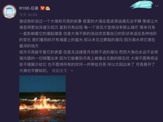 但是!!!精彩的是任豪在10月15日零点的时候分享了一个大海和月亮的故事,疑似在回应#赵温柔长文#。