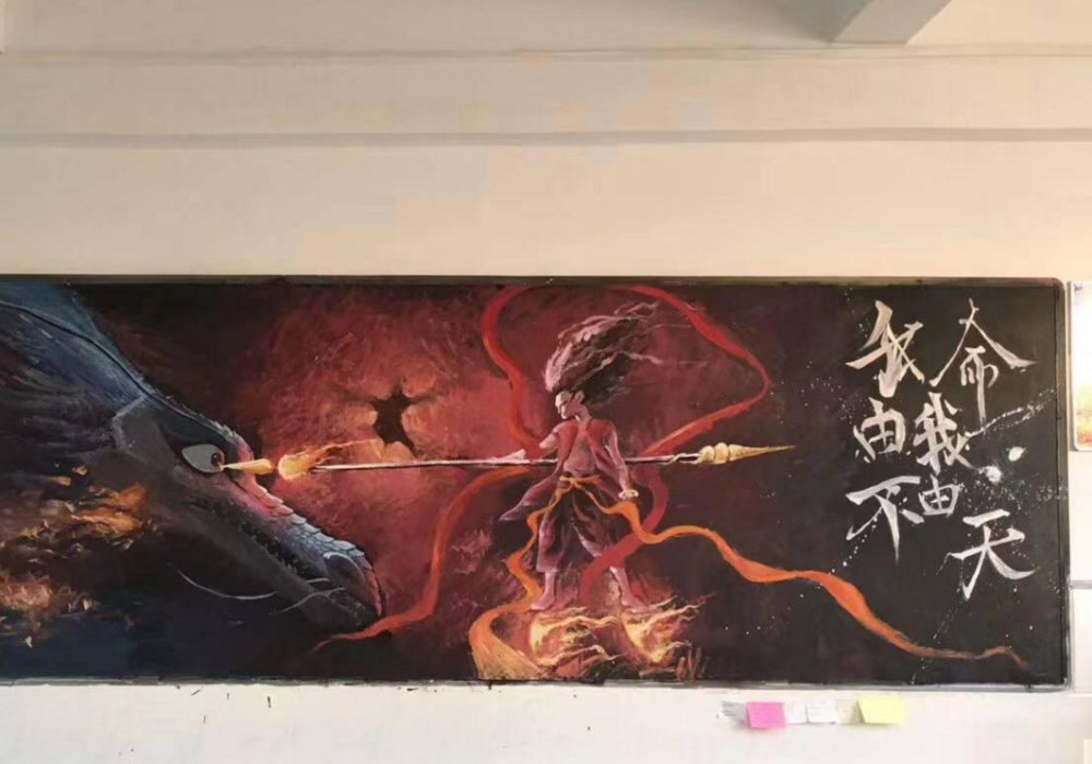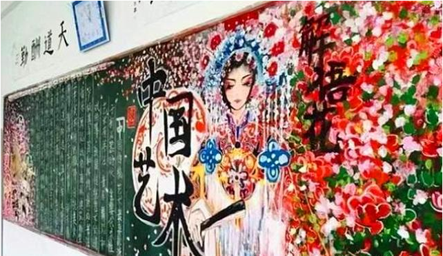 在这位学生画的黑板报上来看,这位学生的画工是相当不错的,这一黑板的“中国艺术”,真的让人惊叹,而且也非常的让人羡慕,但是却不入老师的眼。