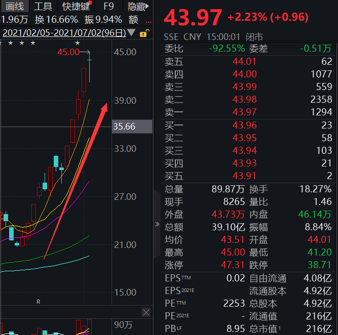 其中,拥有两个国家级保密品种的广誉远成为本轮炒作的龙头,从6月16日至7月2日,广誉远股价从20.86元暴涨至43.97元,半月内实现了翻倍。本周累计涨幅超45%,收获3个涨停板。