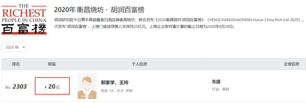 在《2020年 衡昌烧坊 · 胡润百富榜》中,郭家学夫妇以20亿的身家上榜,彼时广誉远的股价还在15元左右徘徊。