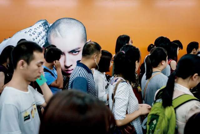 (2016年7月,人们路过北京的一处地铁通道,墙上印有吴亦凡的形象。图/视觉中国)