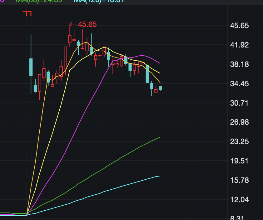 盐湖股份T恤上印的是43.9元,如有股民在此上车,目前一手浮亏1061元。
