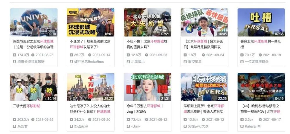 舆论市场上首先吸引注意力的是北京环球影城各类游玩相关的短视频。抖音、快手、微博等社交媒体平台上出现了不少威震天的相关段子,#威震天社交牛逼症#等相关话题登上微博热搜,同时环球影业偶遇吴磊、白敬亭、魏大勋、孟美岐、宋妍霏等明星的话题也引起一波热潮。而B站上也出现了各路UP主的环球影城vlog。