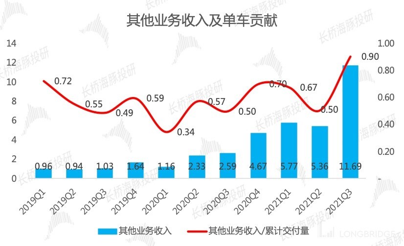 以累计交付量为基础,2021 年二季度公司存量车单车贡献 9000 元收入,粗略计算年化 3.6 万元收入,公司在汽车销售之外变现能力持续得到财务数据的验证,随着存量车持续增加,该部分业务的稳定性和贡献度会逐步提升,忠实且具备消费能力的车主是公司最宝贵的资源。