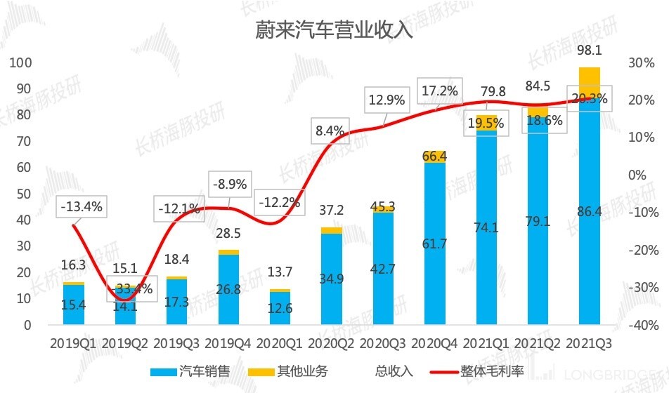 在交付量保持强劲的基础上,实现汽车销售收入 86.4 亿元,环比二季度增长 9%。