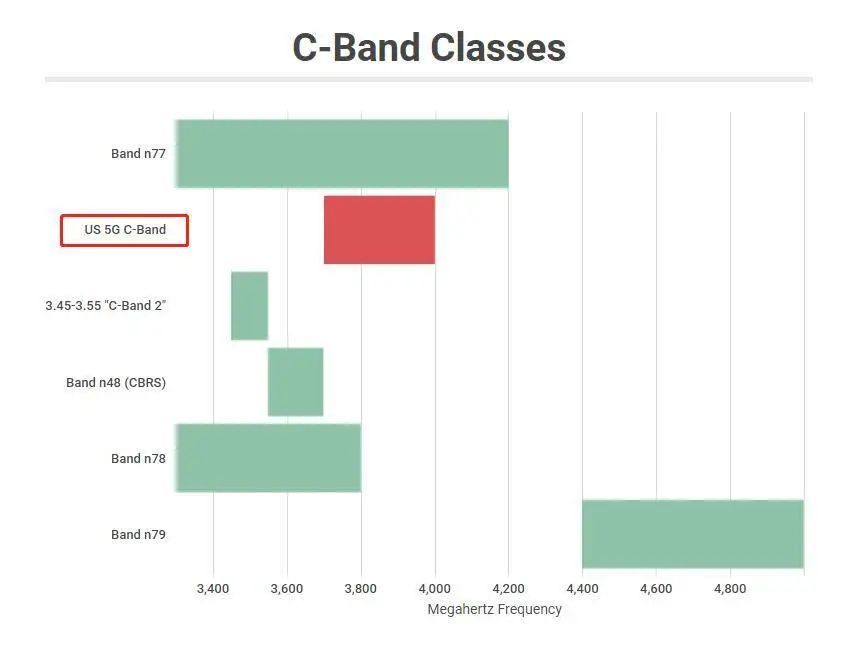 他们选择 3.45-3.55GHz 频段以满足对中频波段的覆盖,这一频段距离无线电高度计的工作频率有一段较大的安全缓冲区,所以 T-Mobile 得以在此次风波中独善其身。