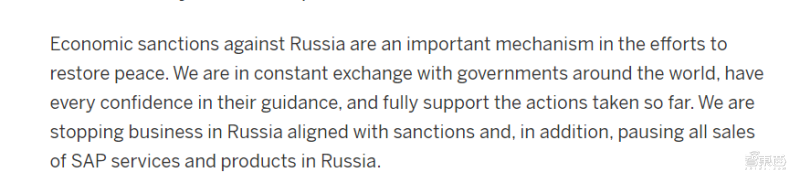 ▲SAP官网上停服俄罗斯的通知