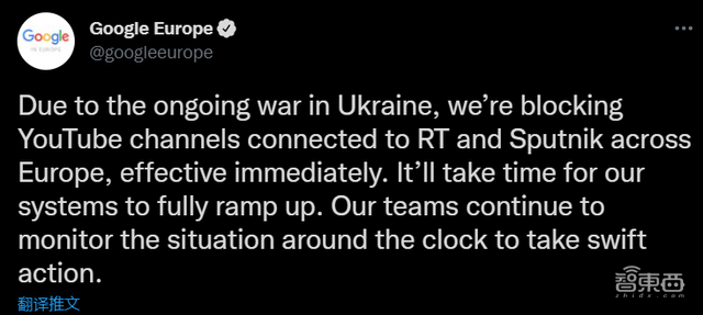 ▲谷歌宣布封禁俄罗斯官方媒体