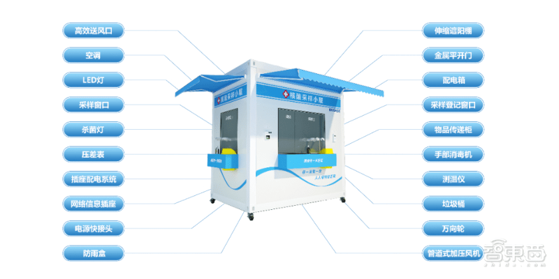 这种核酸采样亭不仅是一个移动空间,还是一个集成了空气调控系统、视频监控、网络设备、身份识别门禁、扩音器等多种设备的站点,提供智能化服务。