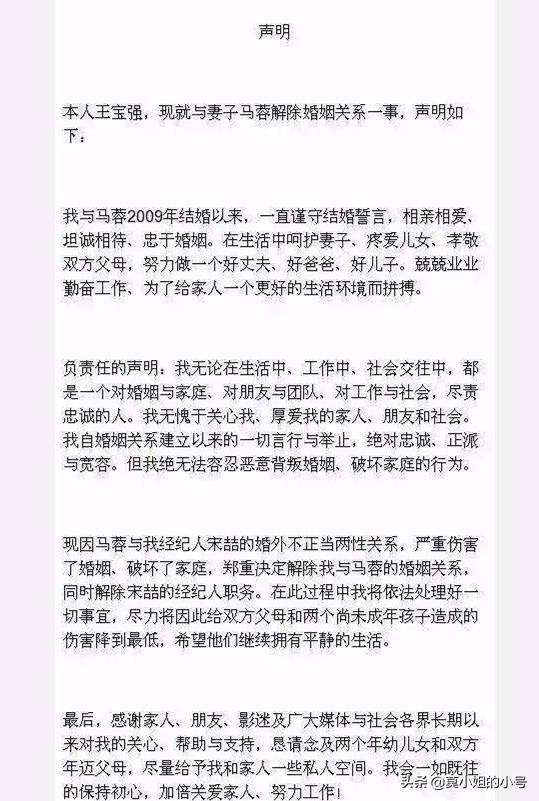 事实就是如此!2016年8月14日,王突然发文,称妻子马蓉和经纪人宋喆有暧昧关系,并曝光了相关证据。