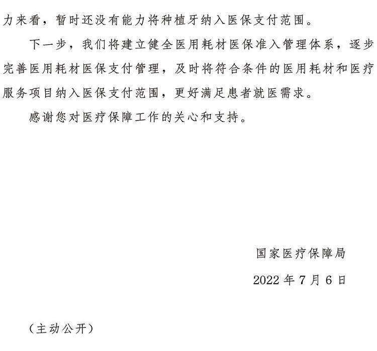 原标题:国家医保局:暂未考虑将种植牙纳入医保支付范围