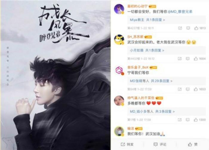 摩登兄弟“成长风暴”巡回演唱会武汉站是最早一批宣布演出延期的项目,但丝毫没有妨碍粉丝的热情,94%的购票用户保留了已购订单,纷纷留言“我们在武汉等你”。