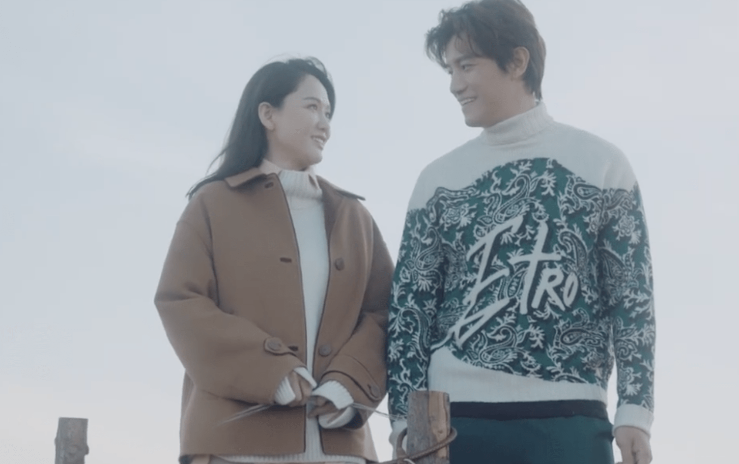 郑恺身穿黑色大衣,绅士帅气,苗苗身着长裙,烫了波浪卷,御姐范儿十足。两人在一片稻田里手牵着手,气场契合,般配养眼。