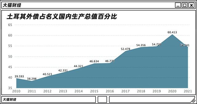 2008年的时候,土耳其外债还只有2700亿美元左右,等到2018年已经飙到了4700亿美元,负担对一个中等体量的国家来说还是很重的。