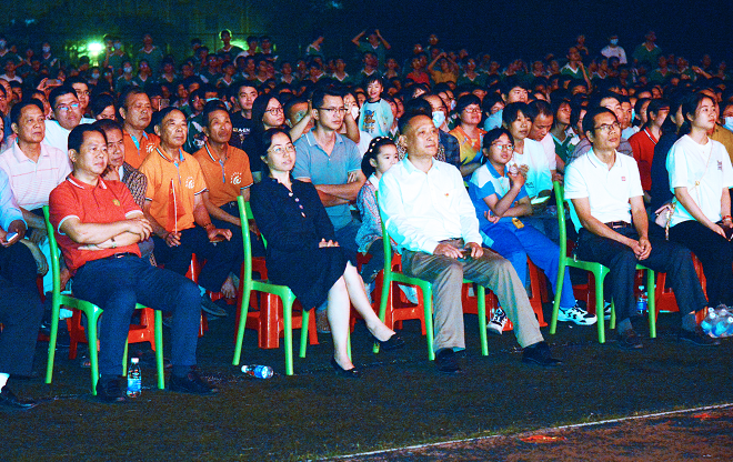 信宜市区专场演出当晚,会展中心千人报告厅座无虚席。由于该剧取材于发生在信宜本土的“怀乡起义”历史故事,因此备受信宜广大市民关注。在前五场演出中,大家纷纷为朱也赤烈士的革命精神拍手叫好,随着情节的深入,到“落入摩掌”“气壮南天”场次,大家为朱也赤烈士感到惋惜、痛心,被先烈事迹感动不已。很多观众看完演出后纷纷表示,该剧鲜活地向人们展示了无产阶级革命者对党和人民的无限忠诚,他们为了人民的解放事业抛头颅、洒热血、舍生忘死的革命精神感人肺腑,鼓励着后人不忘初心、牢记使命,珍惜和创造更加幸福美好的生活。