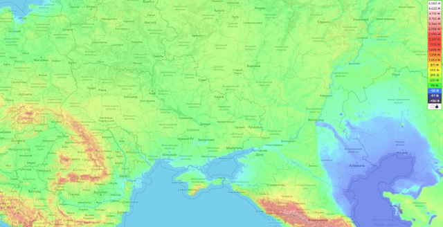 (从地形图可以看到,乌克兰海拔超过90米的地区都不多)
