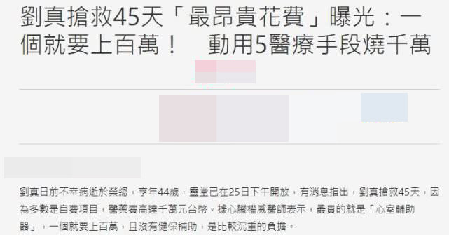 但是台媒此前报道,刘真在45天的抢救期间动用了医院不少医疗物资和资源,几乎花光了辛龙的积蓄。