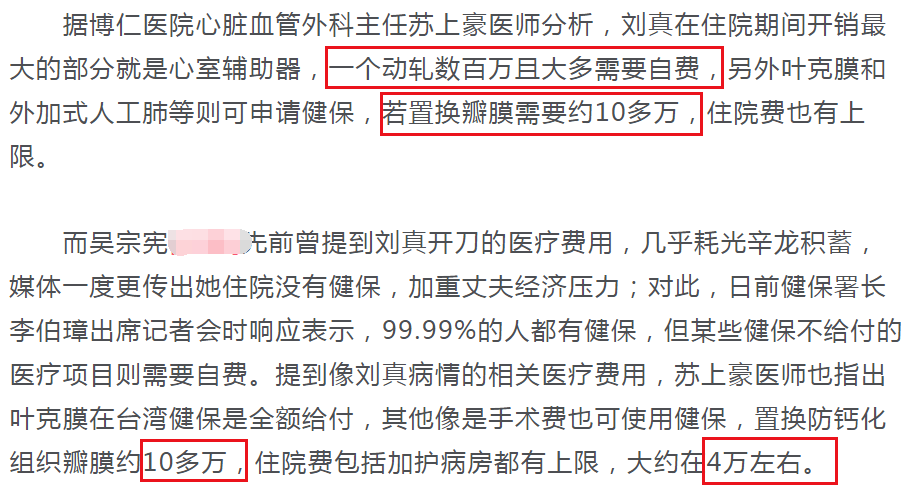 刘真医疗开销公布:整体花费数百万新台币 叶克膜可报销