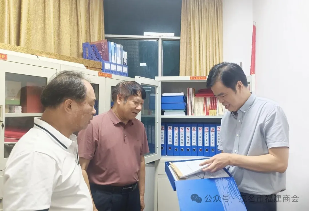 交流伊始,在黄思敏、程天兵的陪同下,李仲一行先后参观了茂名市福建商会的办公区域、党员活动室等场所。通过实地察看、翻阅资料、听取介绍等方式,详细了解了商会的组织架构、运营管理模式以及党建工作的基础建设情况。党员活动室内,规范整齐的党建台账、主题鲜明的宣传展板、功能完善的活动设施,展现出商会党建工作的扎实基础,得到了李仲一行的肯定。
