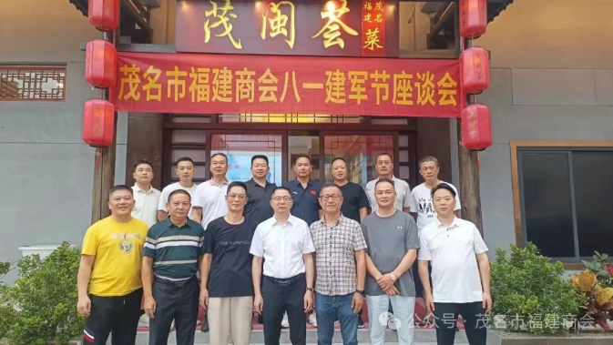 在第98 个中国人民解放军建军节即将到来之际,为传承拥军优良传统,凝聚退役军人力量,7 月 31 日,茂名市福建商会举行八一建军节座谈会。商会执行会长以上人员、会员中的退役军人及在茂工作生活的闽籍部分退役军人以及公安干警,齐聚一堂,共话初心,共叙军民情谊。