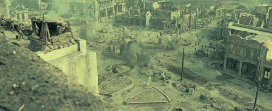 顶着炮火沿街道推进,突破了日军一道道防线。