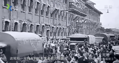 在524团一营被送往租界内孤军营的路上,有一段当年拍摄的黑白影像。